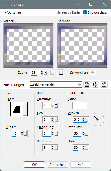 Mit den bereits eingestellten Werten von Schritt 1