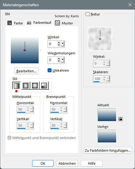 Erstelle damit (z.B. bei "Vordergrund") folgenden Farbverlauf: