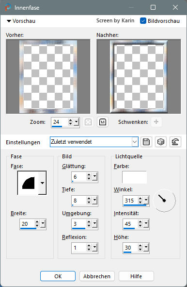 Einstellungen wie bereits eingestellt, siehe Schritt 3