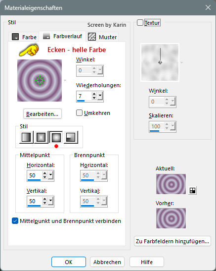 Erstelle damit (z.B. bei "Vordergrund") folgenden Farbverlauf: