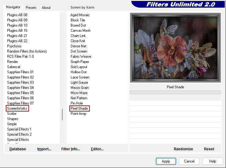 Filters Unlimited / ScreenWorks / Pixel Shade